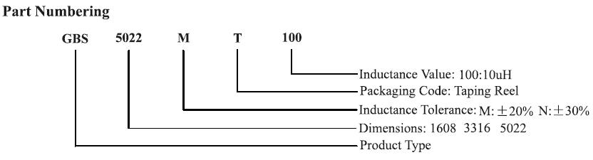 六、貼片功率電感GBS Series 編碼系統(tǒng)