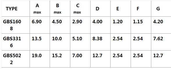四、貼片功率電感GBS封裝尺寸列表